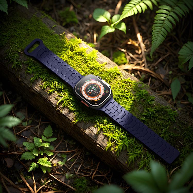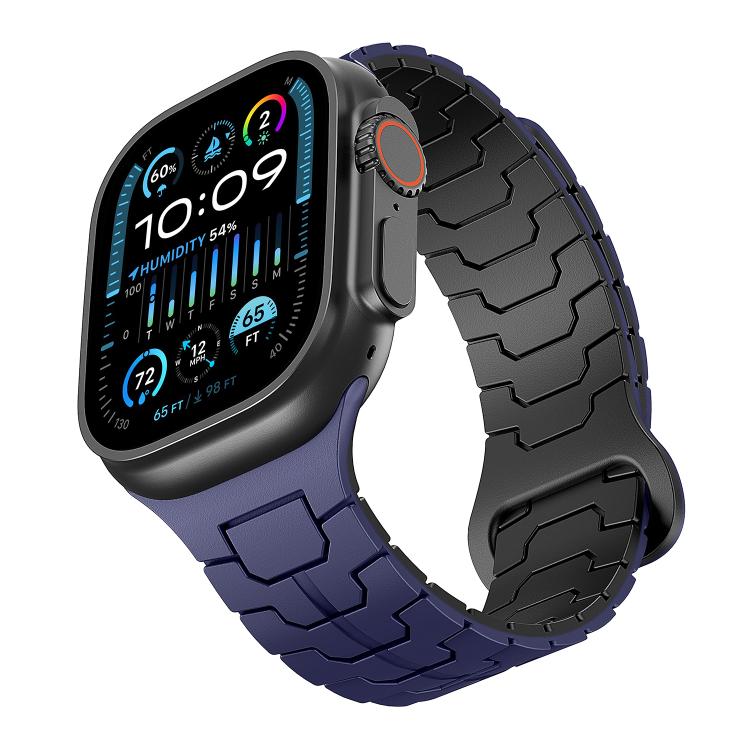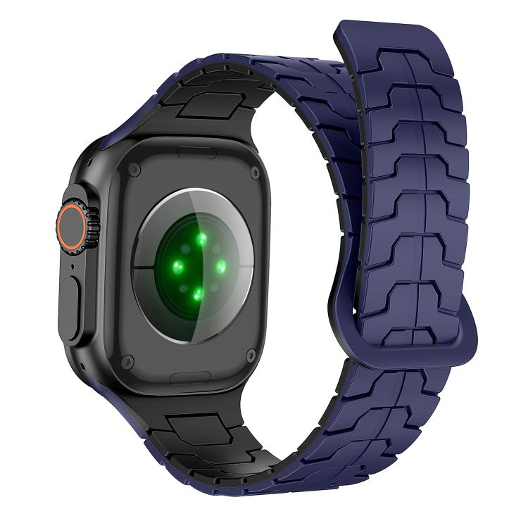 Correa magnética de silicona con diseño de escamas de dragón de acero para Apple Watch de 46 mm, 49 mm, 45 mm y 44 mm (azul marino, negro medianoche).