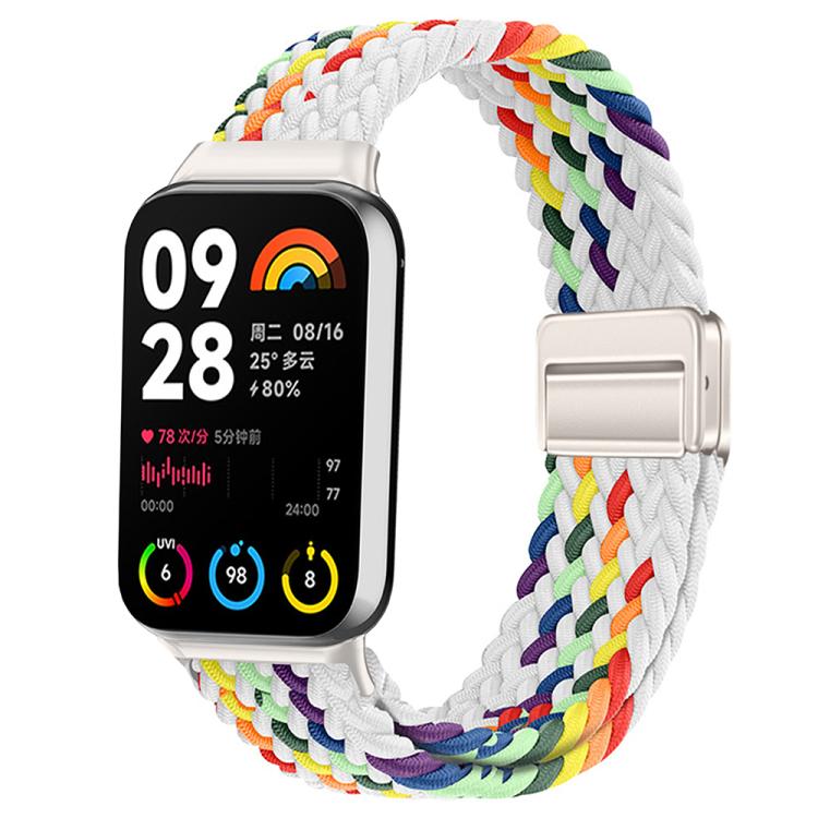 Correa trenzada con hebilla magnética fina para Xiaomi Smart Band 9 Pro y Redmi Watch 5 (arcoíris blanco)