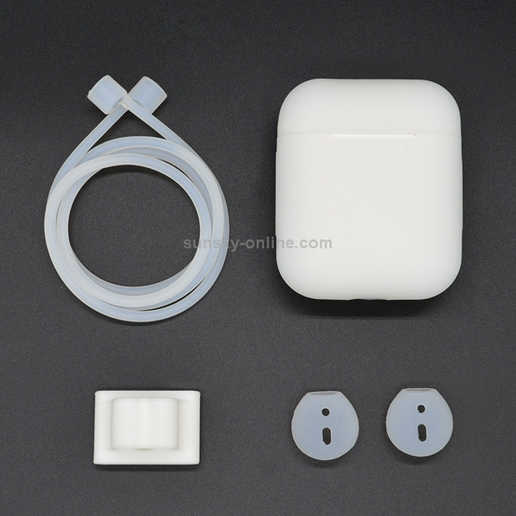 Cuerda Anti-Perdida + Funda Silicona + Hebilla Colgar Auriculares + Funda Tapones Auriculares Bluetooth Apple Airpods 1/2 (Transparente)