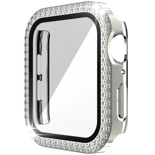 Funda de Reloj + Protector de Vidrio Templado Diamante para Apple Watch Series 6, SE, 5, 4 44mm (Plata)
