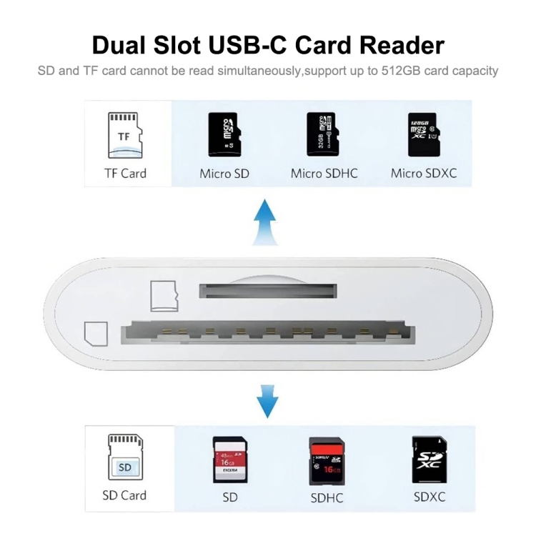 - Soporta Tarjetas SD, SDHC, SDXC, MicroSD, Micro SDHC, Micro SDXC, UHS-I; velocidad de transferencia USB 3.0; capacidad máxima de Tarjeta hasta 512 GB; Conexión plug and play sin necesidad de drivers; no permite lectura simultánea de dos Tarjetas