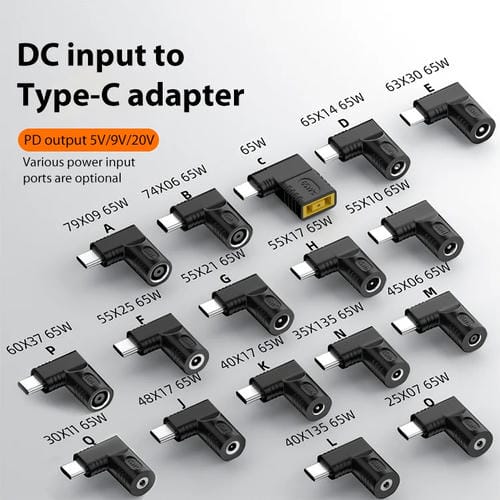 - Entrada: DC 12-20.5V; Salida: PD 5V / 9V 1.5A / 20V 3.25A, PPS 3.3-11V; Potencia máxima 65W; Plug and play; Alta eficiencia de conVersión