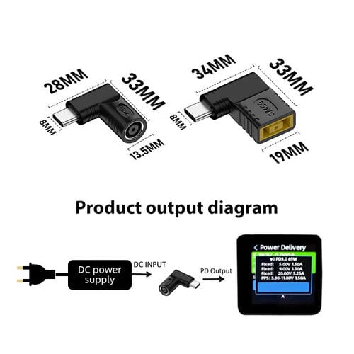 - Entrada DC 12-20.5V; salida PD 5V / 9V 1.5A / 20V 3.25A; Soporte PPS 3.3-11V; alta eficiencia de conversión y salida de alta potencia