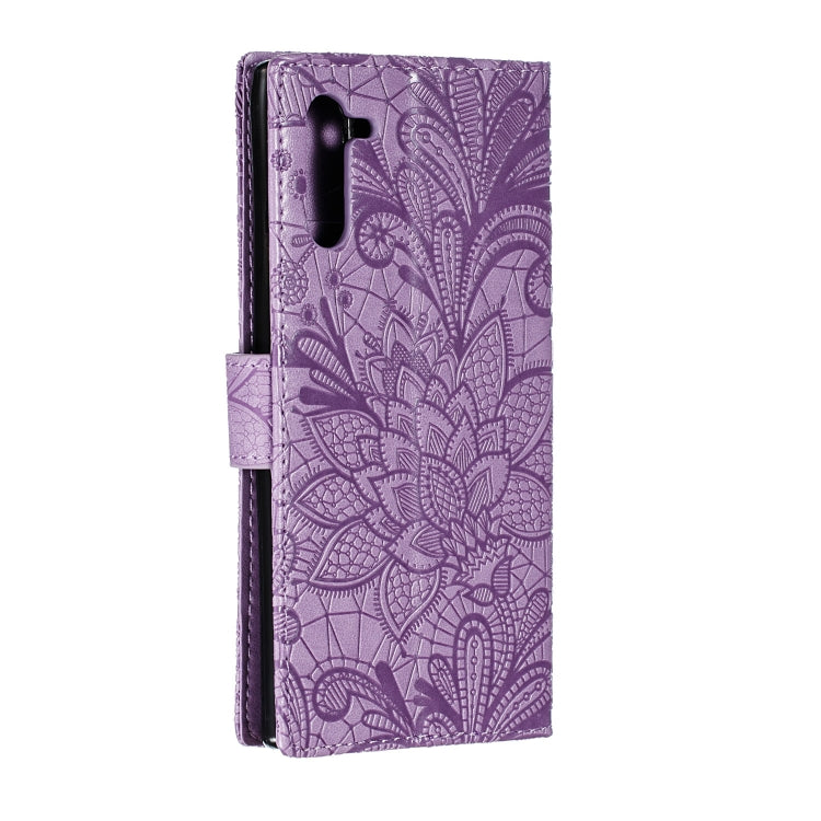 Estuche de Cuero Galaxy Note10 con Tapa Horizontal, Soporte, Ranuras para Tarjetas, Billetera, Marco de Fotos y Cordón (Púrpura)