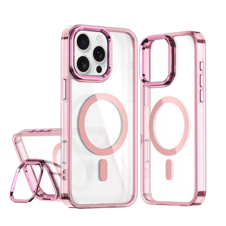 Estuche Magnético para Teléfono Magsafe con Soporte para Cámara de Acrílico para iPhone 16 Pro Max (Rosa)