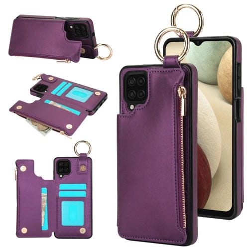 Estuche para Teléfono Samsung Galaxy A12 Rfld con Cremallera y Anillo Doble Hebilla Antirrobo (Morado Oscuro)