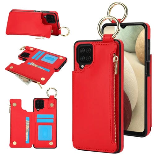 Estuche para Teléfono Samsung Galaxy A12 Rfld con Cremallera y Anillo de Doble Hebilla Antirrobo (Rojo)