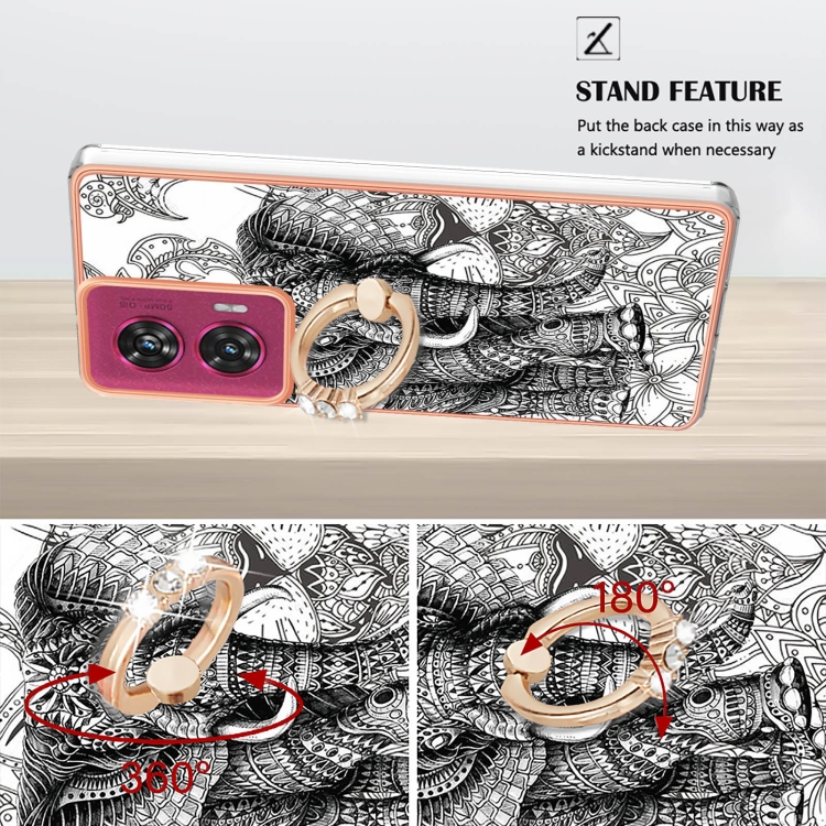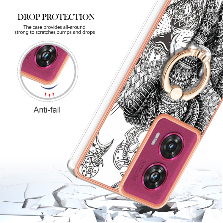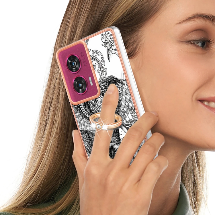 Estuche para Motorola Edge 50 Fusion con Galvanoplastia Doble Cara Imd y Soporte para Anillo (Elefante Tótem)
