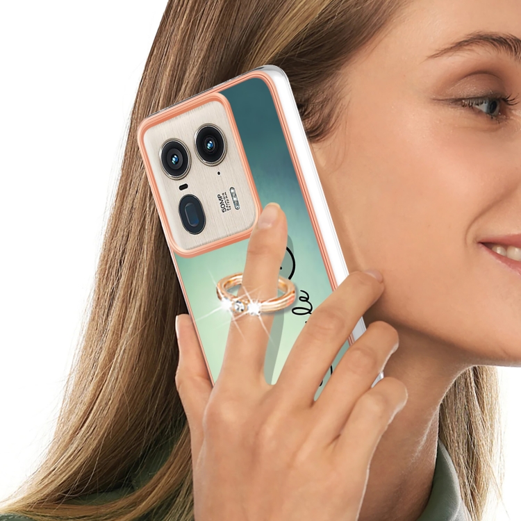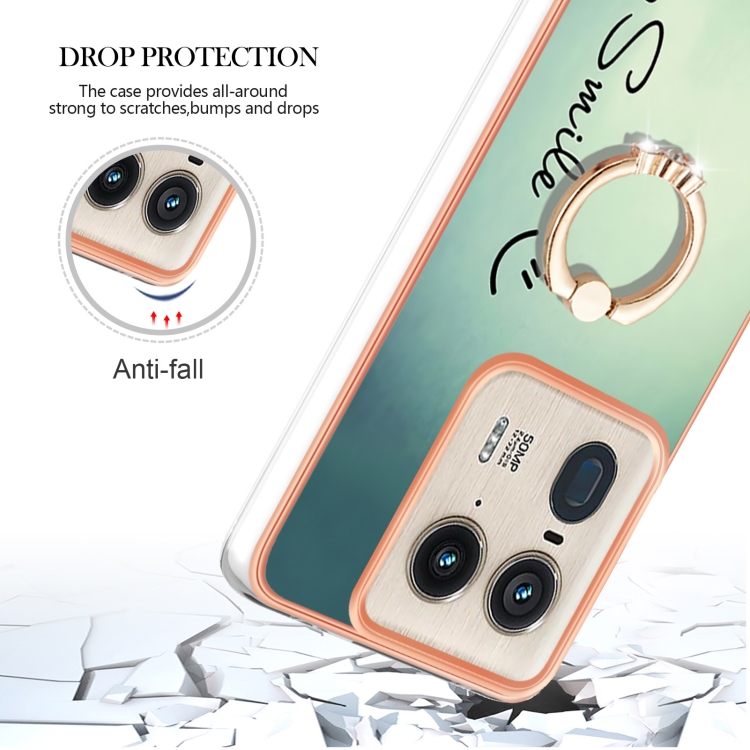 Estuche para Teléfono Motorola Edge 50 Ultra con Galvanoplastia Doble Cara IMD y Soporte para Anillo (Sonrisa)