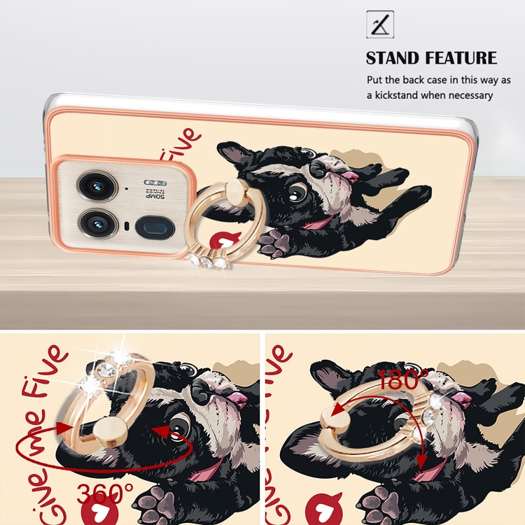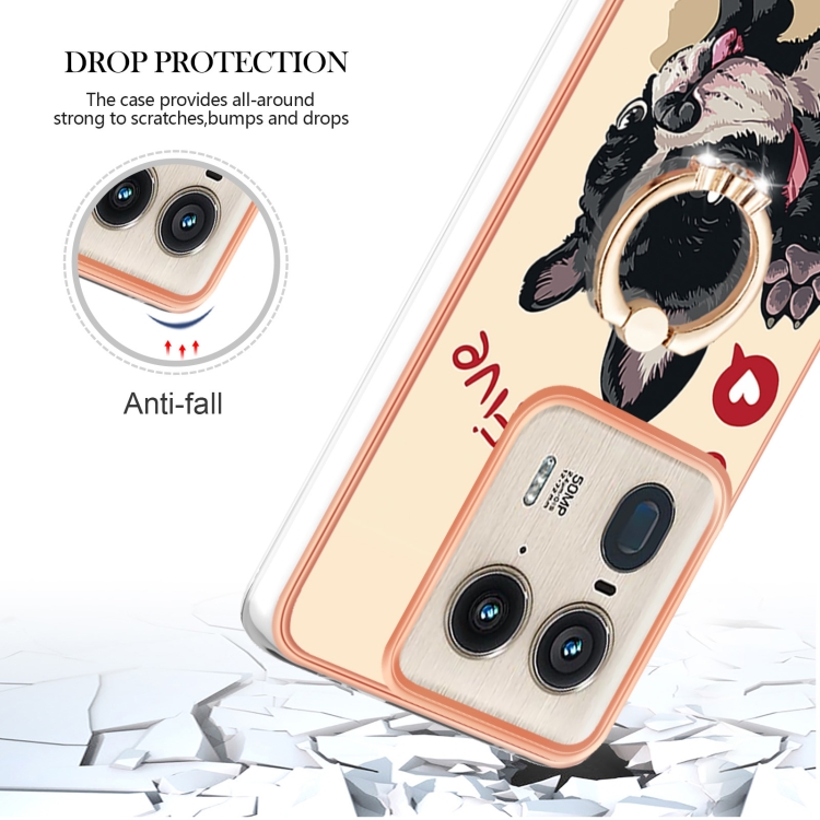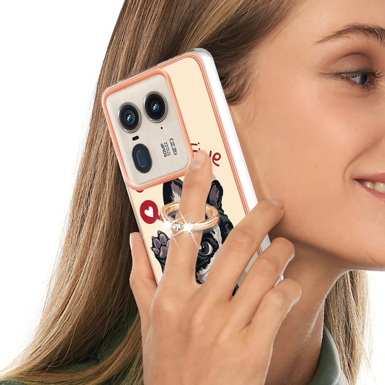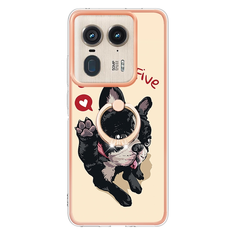Estuche para Motorola Edge 50 Ultra con Galvanoplastia IMD Doble Cara y Soporte para Anillo (Perro de la Suerte)