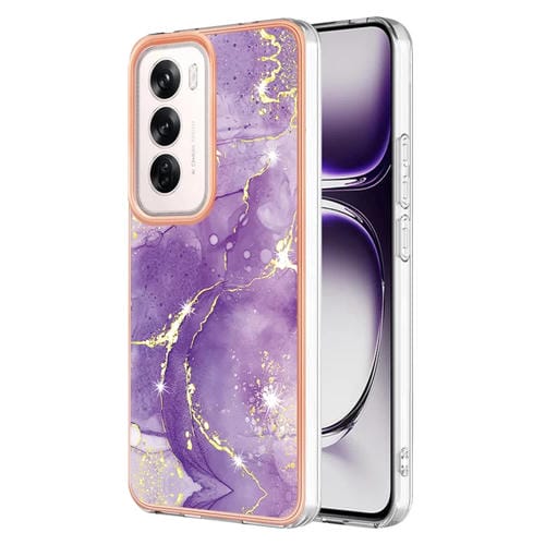 Estuche para Teléfono con Imd de Doble Cara con Galvanoplastia de Mármol para Oppo Reno12 Global (Púrpura 002)
