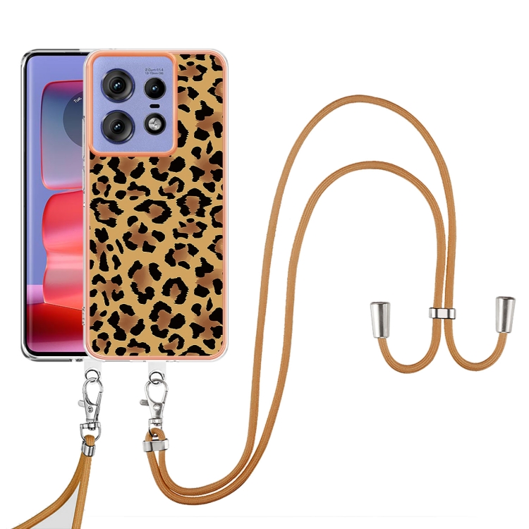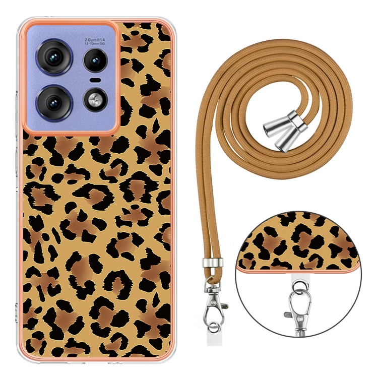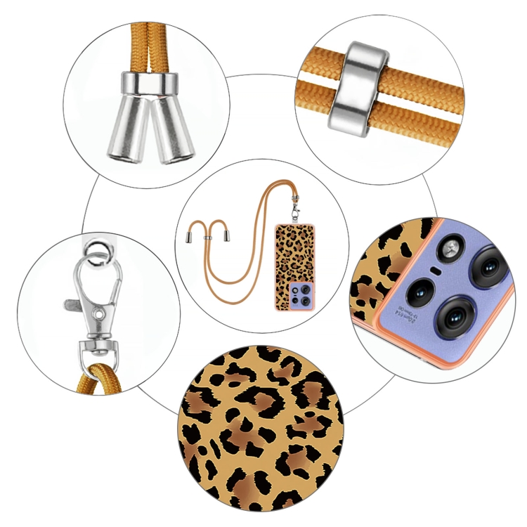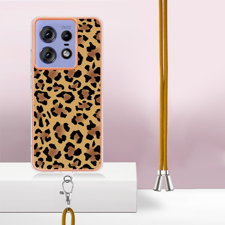 Estuche para Teléfono Motorola Edge 50 Pro con IMD Doble Cara Galvanizada y Cordón (Leopardo)