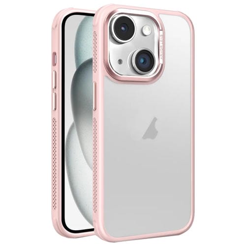 Estuche para Teléfono iPhone 15 Plus Marco Metal Esmerilado Sensación Piel Enfriamiento Lateral (Rosa)