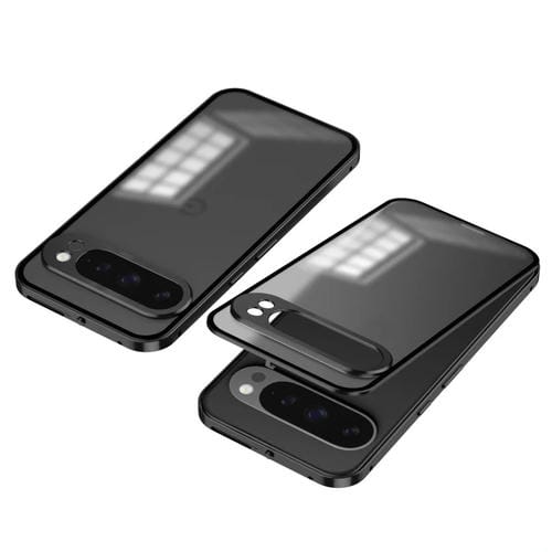 Estuche para Teléfono Google Pixel 9 Pro XL con Marco Metal Esmerilado y Hebilla a Presión (Negro)