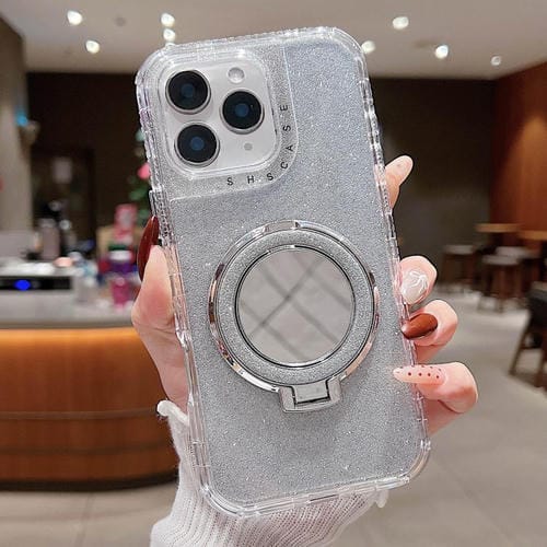 Estuche para Teléfono Magsafe iPhone 11 Pro Max Soporte Espejo Purpurina (Plateado)