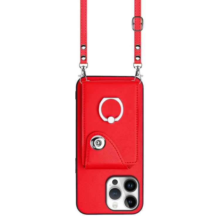 Estuche para Teléfono iPhone 16 Pro Max Soporte Tarjetas Anillo Cordón Largo (Rojo)