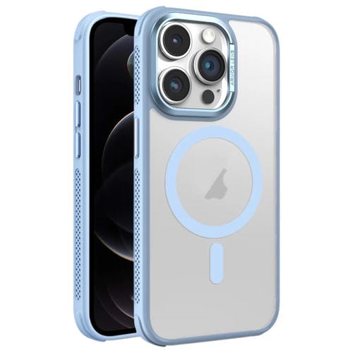 Estuche para teléfono Magsafe iPhone 12 Pro Marco Lente metal esmerilado piel enfriamiento lateral (Azul Cielo)