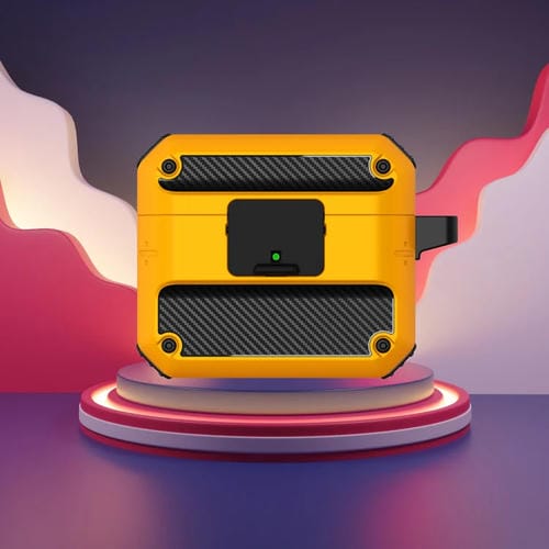 Estuche Protector Auriculares Airpods 3 TPU + PC con Bomba Automática y Interruptor (Negro Amarillo)