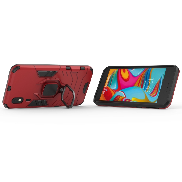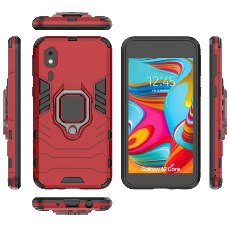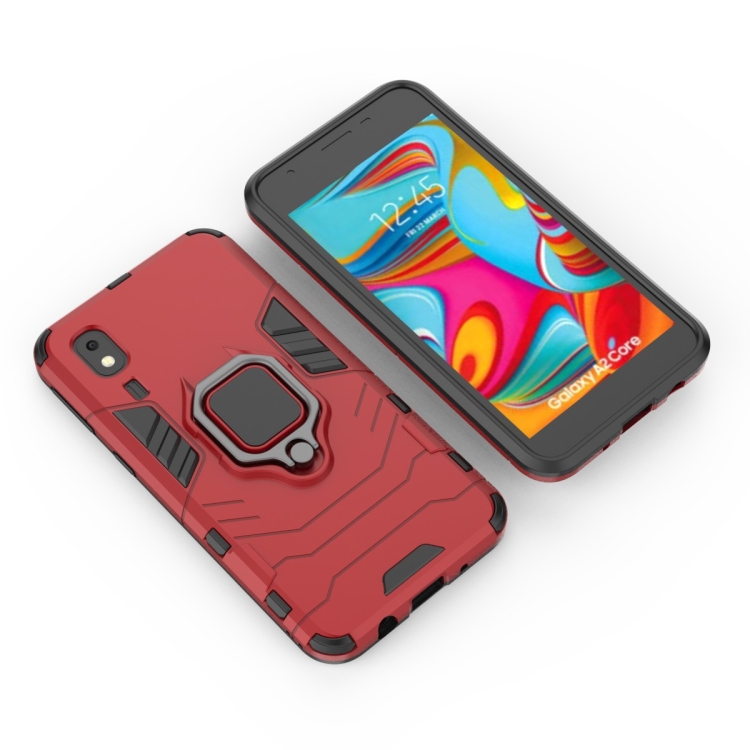Estuche Protector PC + TPU Galaxy A2 Core Soporte Anillo Magnético (Rojo)