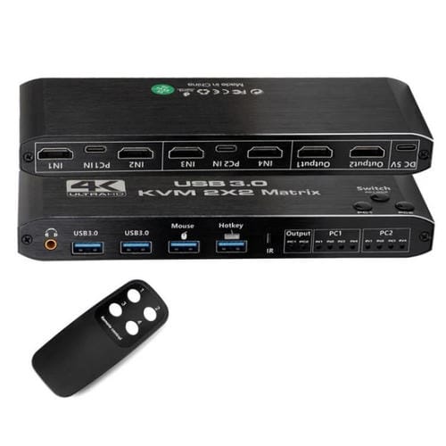 • 1x Extensor de Pantalla Dual USB 3.0 K3-1 4K 60 Hz Matriz HDMI Conmutador KVM 2x2