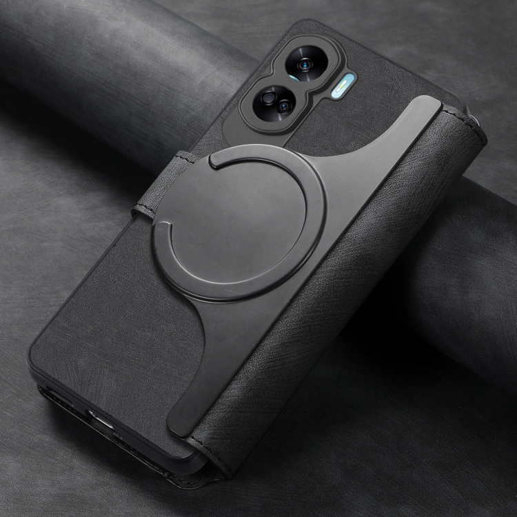 Funda de Cuero Retro Antirrobo Caseneo Magsafe Rfid para For Honor 90 Lite (Negro)