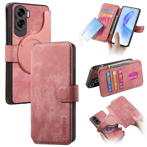 Funda de Cuero Retro Antirrobo Caseneo Magsafe para For Honor 90 Lite (Rosa)