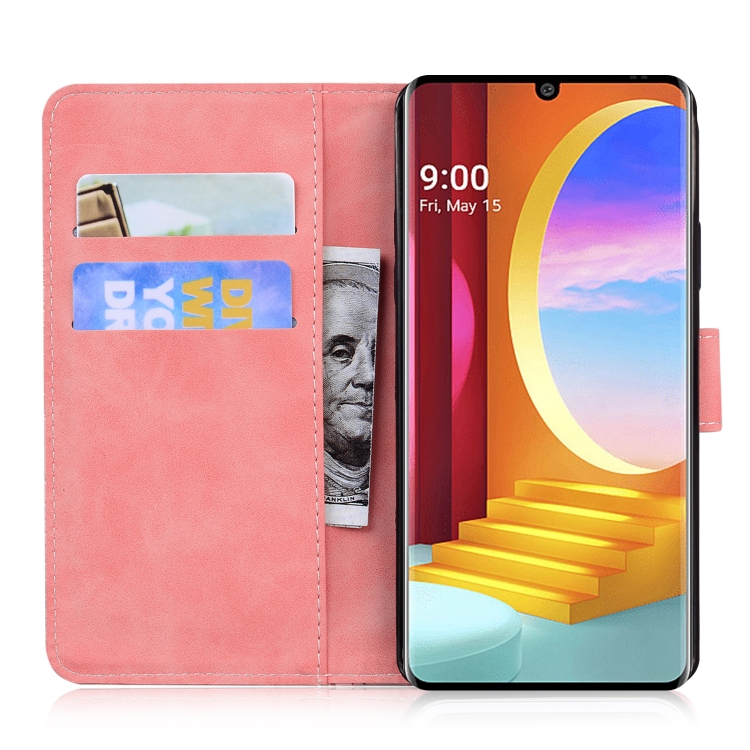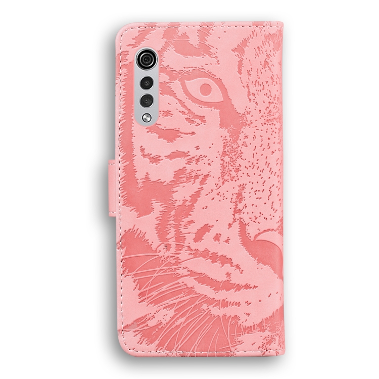 Funda Horizontal de Cuero para LG Velvet G9 con Estampado Tigre, Soporte, Ranuras para Tarjetas y Billetera (Rosa)