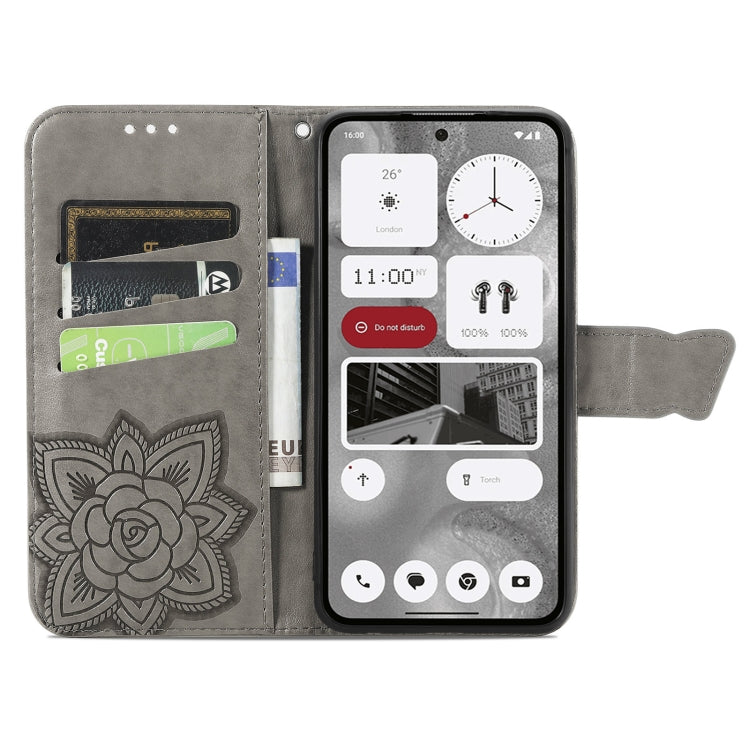 Estuche de Cuero For Nothing Phone 2 con Tapa Horizontal en Relieve y Flor de Mariposa (Gris)