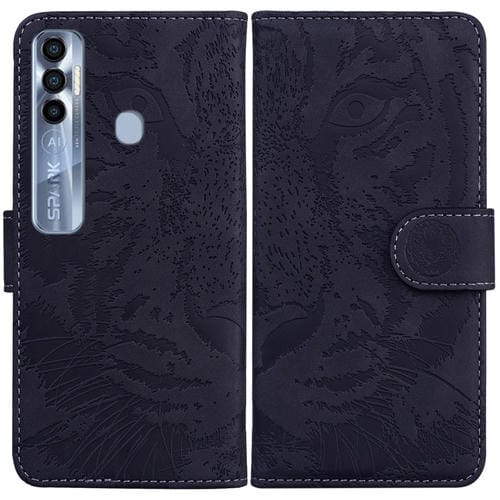 Funda para Tecno Spark 7 Pro con patrón de tigre en relieve, tapa horizontal, cuero (Negro)