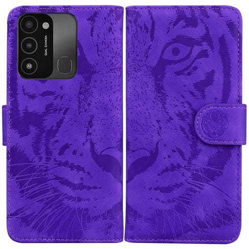 Funda Horizontal Flip de Cuero para Tecno Spark Go 2022 / Spark 8C con Patrón Tigre (Morado)