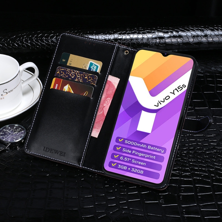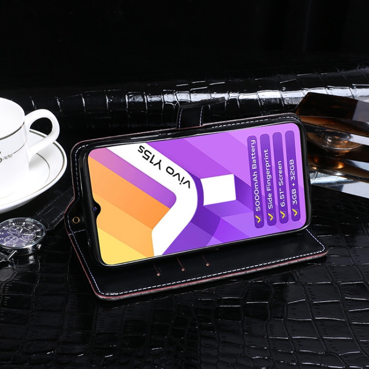 For Vivo Y10 Idewei Cocodrilo Textura Horizontal Flip Teléfono Teléfono Teléfono de Cuero (Azul Oscuro)