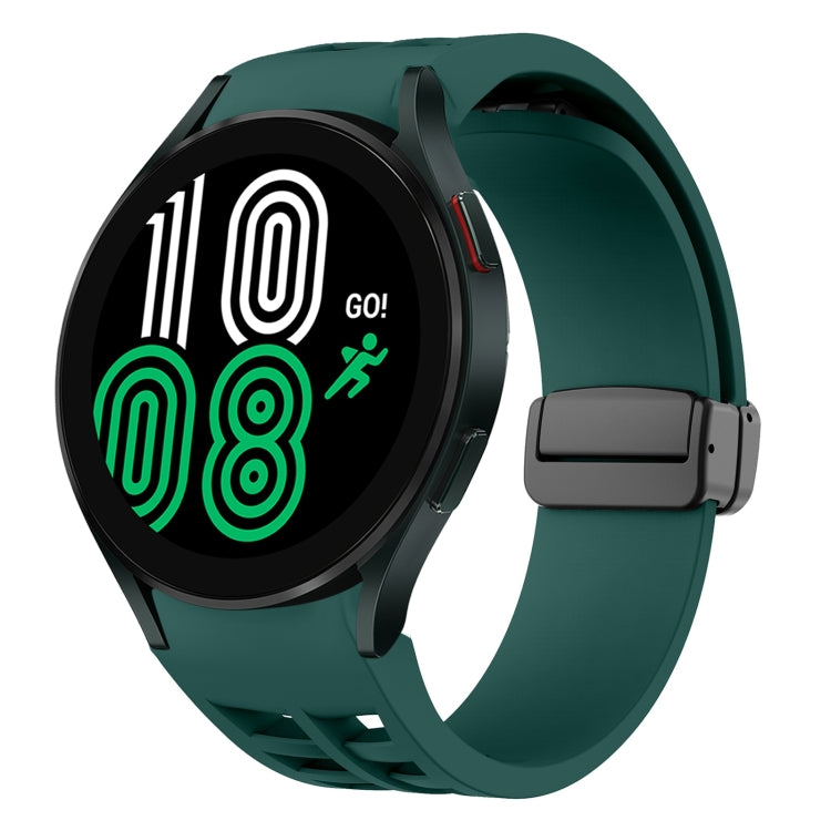 Correa de Silicona Fou para Samsung Galaxy Watch 4 40/44mm con Hebilla Negra Plegable Magnética (Verde Oscuro)