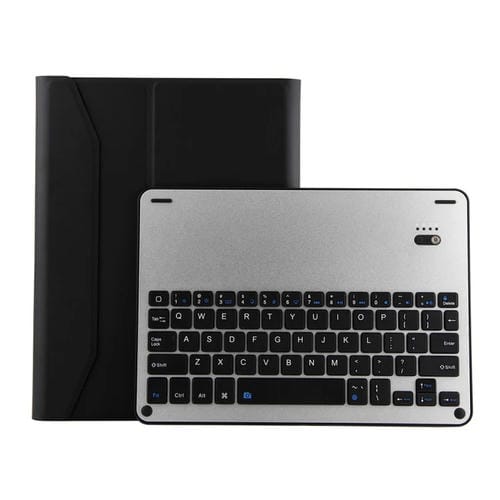 Teclado desmontable Ft-1038E Aleación de aluminio Bluetooth 3.0 con funda cuero para iPad Air Air 2 Pro 9.7 con ranura lápiz suspensión (Negro Plateado)