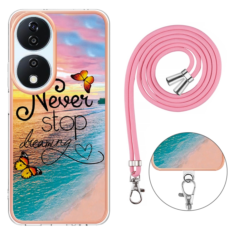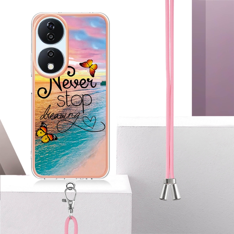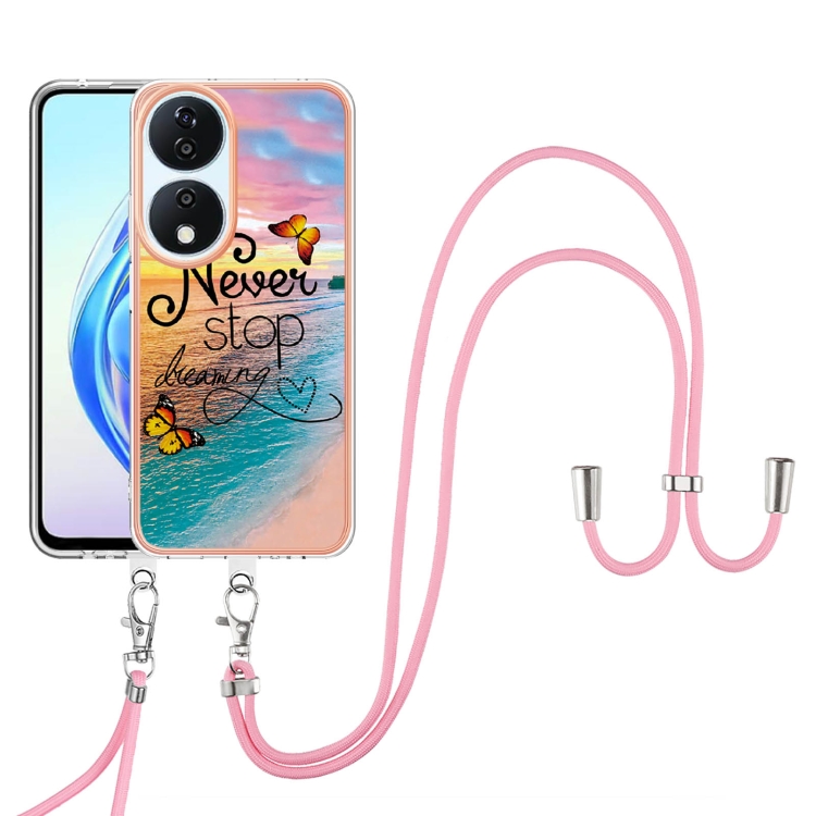 Funda TPU a Prueba de Golpes Honor X7B 4G/5G con Cordón y Patrón Galvanoplastia (Mariposa Persiguiendo Sueños)