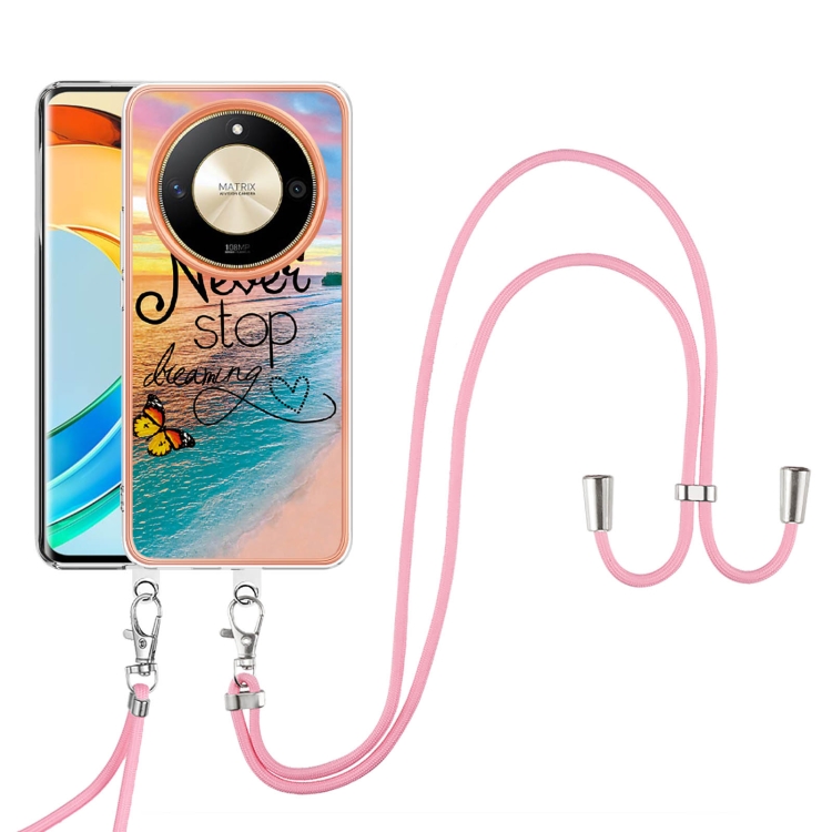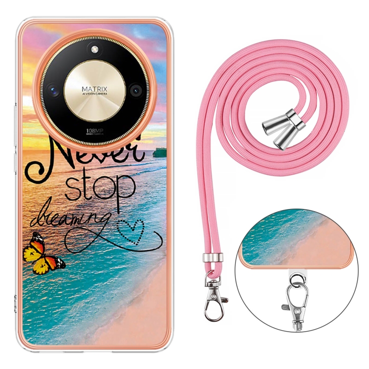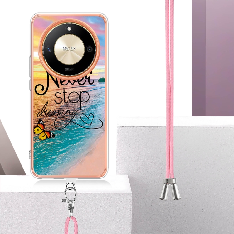 Funda TPU a Prueba de Golpes con Patrón Galvanoplastia IMD para Honor X9B con Cordón (Mariposa Persiguiendo Sueños)