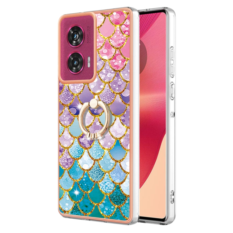 Funda TPU a Prueba de Golpes con Patrón Galvanoplastia y Soporte Anillo para Motorola Edge 50 Fusion (Escamas de Colores)