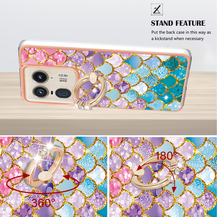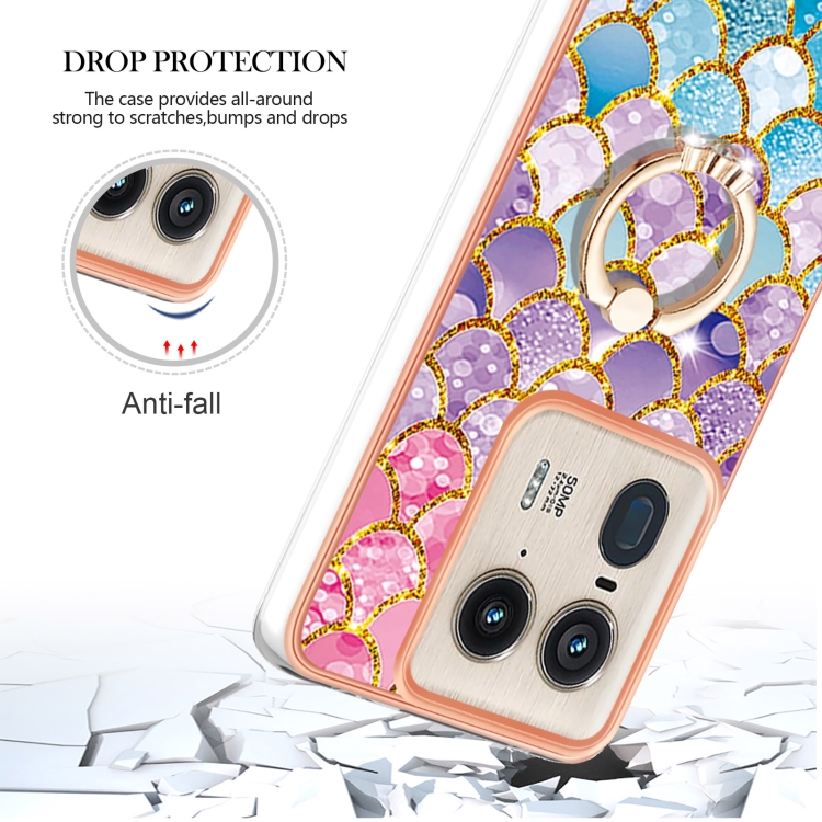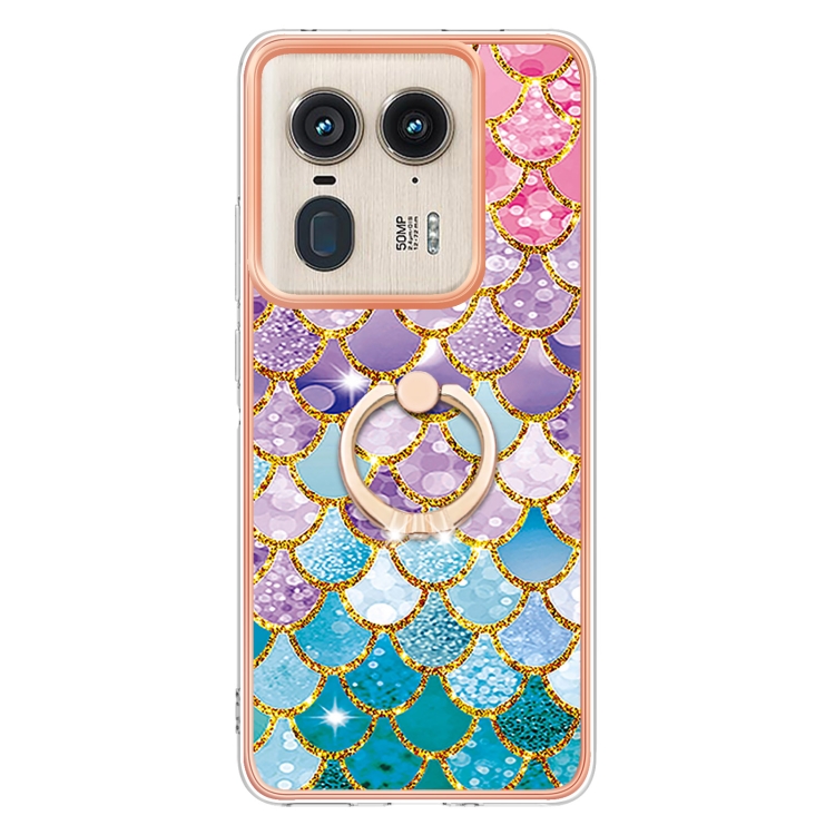 Funda TPU Galvanoplastia con Soporte para Anillo Motorola Edge 50 Ultra (Escamas de Colores)