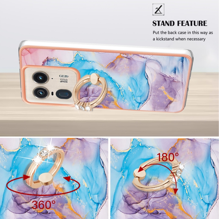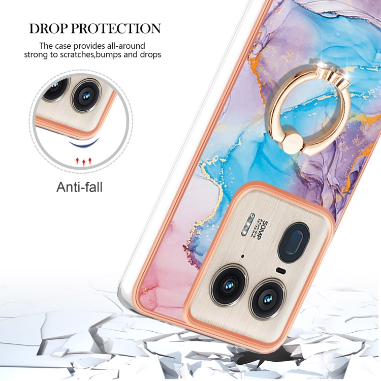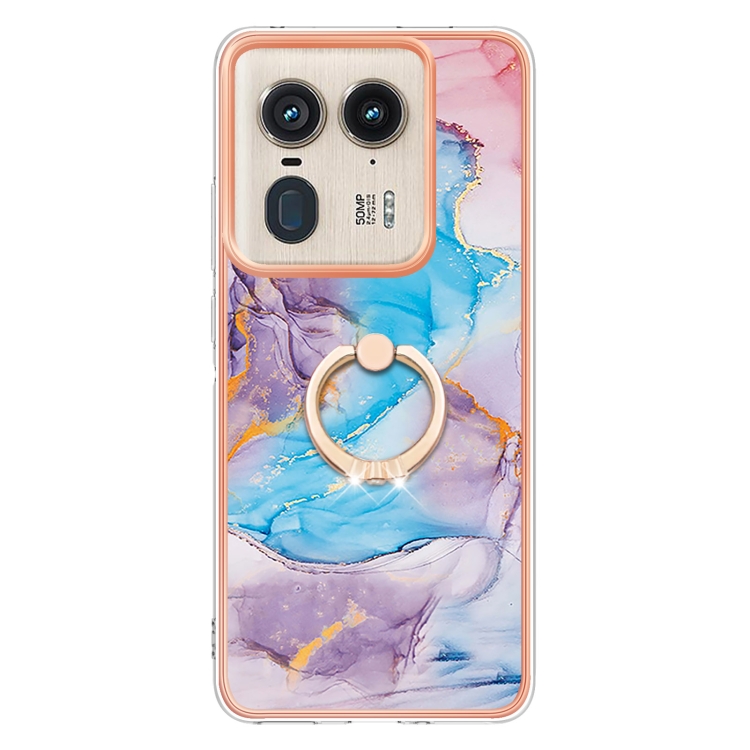 Funda TPU con Patrón Galvanoplastia Imd para Motorola Edge 50 Ultra con Soporte Anillo (Mármol Azul)