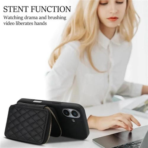Funda AwQuer con cierre cruzado y parte trasera de cuero con diseño rómbico para iPhone 17 (negra)
