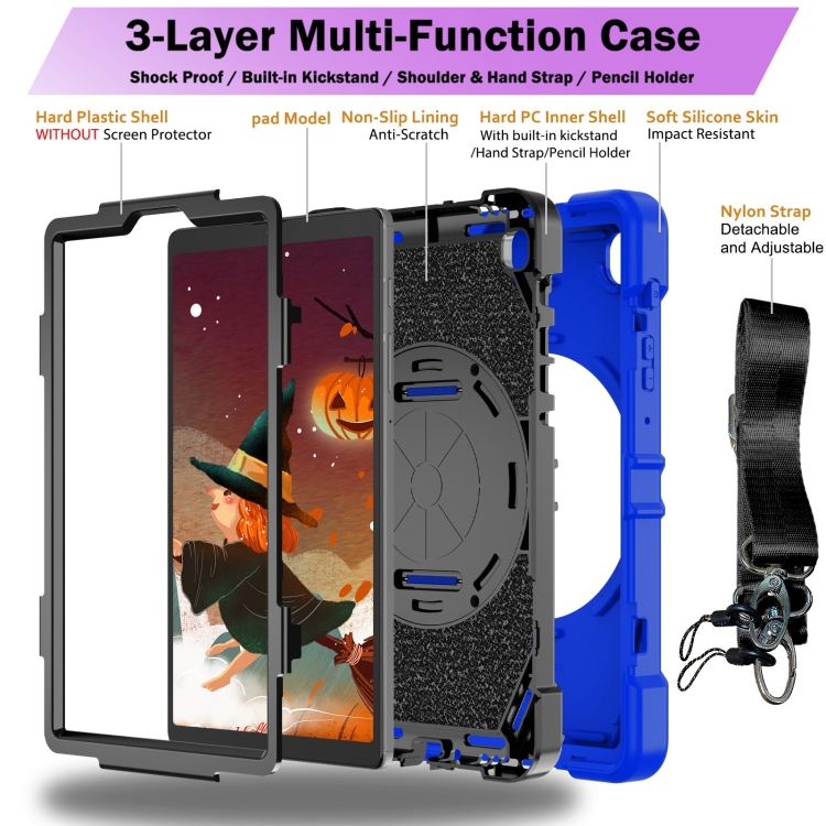 Funda para Tablet Samsung Galaxy Tab A7 Lite con Soporte Giratorio y Empuñadura Tipo Murciélago (Azul y Negro)