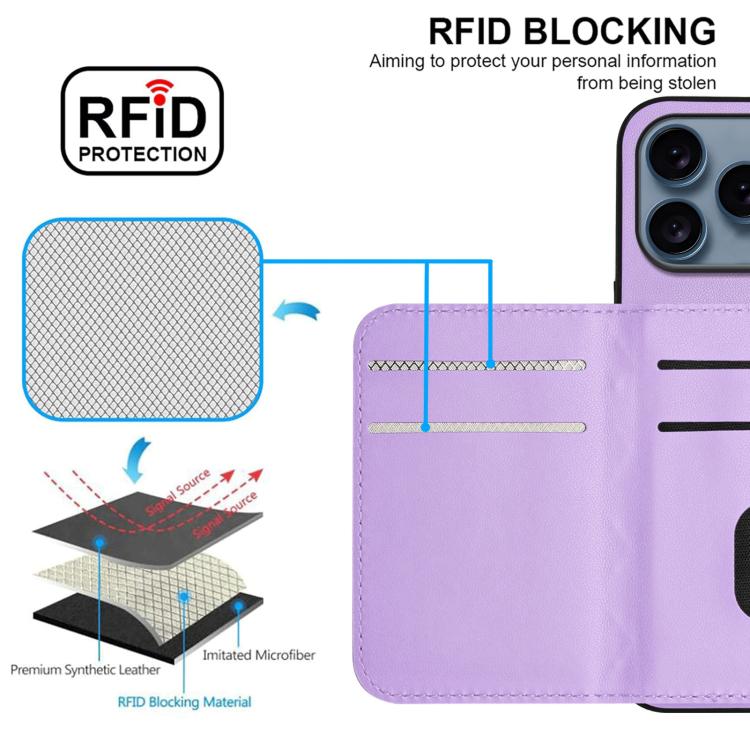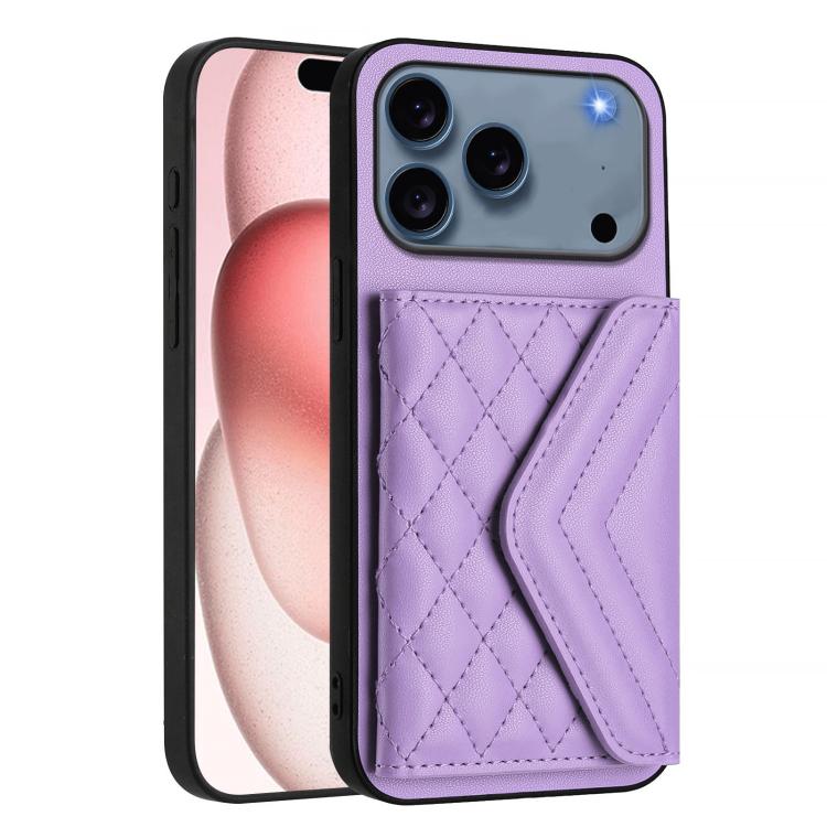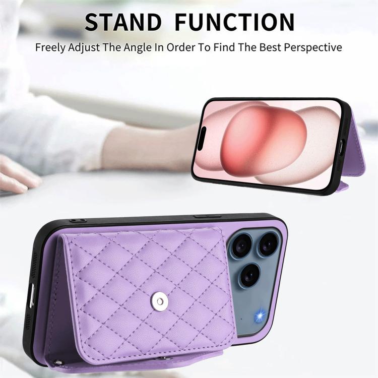Funda con textura rómbica para iPhone 17 Pro Max, con RFID y cordón largo (morado claro)