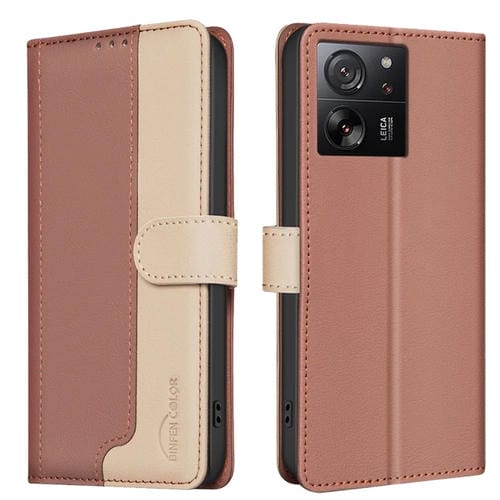 Funda de Cuero Antirrobo con Protección Rfid para Xiaomi 13T/Redmi K60 Ultra (Marrón)