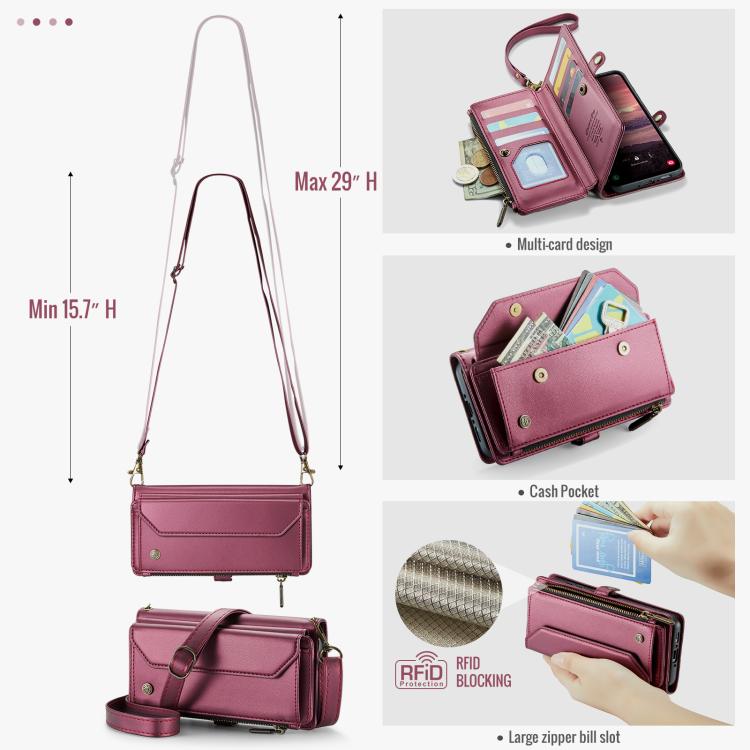 Funda de Cuero Antirrobo Caseme C36 para Samsung Galaxy A56 5G con Ranuras y Billetera con Cremallera (Rojo)