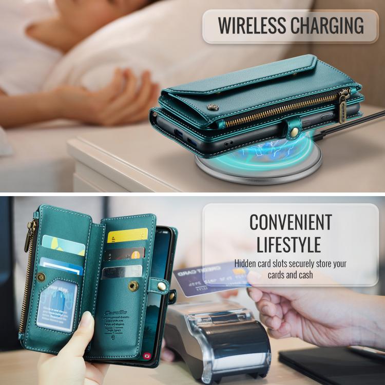 Funda de Cuero Antirrobo Caseme C36 para Samsung Galaxy S25 5G con Ranuras y Cremallera (Azul)