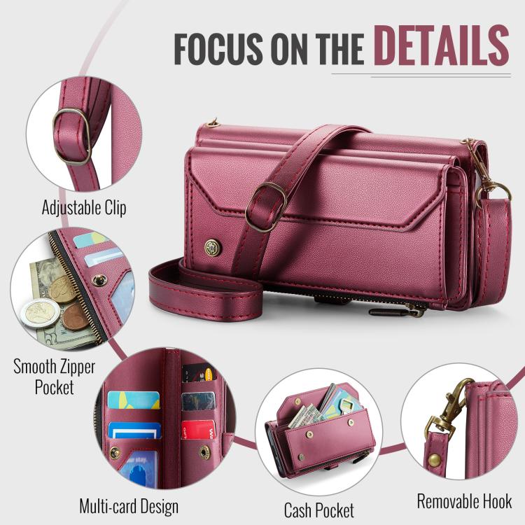 Funda de Cuero Antirrobo Caseme C36 para Samsung Galaxy S25 5G con Ranuras y Cremallera (Rojo)