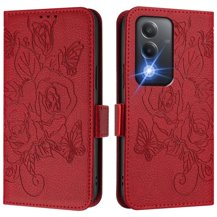 Funda de Cuero Antirrobo con Rfid y Relieve Global para Oppo K12X 5G (Roja)