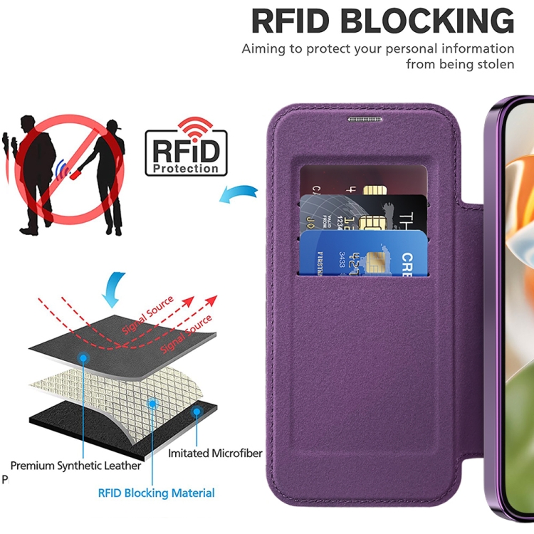 Funda de Cuero Antirrobo para Google Pixel 9 con Protección Magsafe y Rfid (Morado)