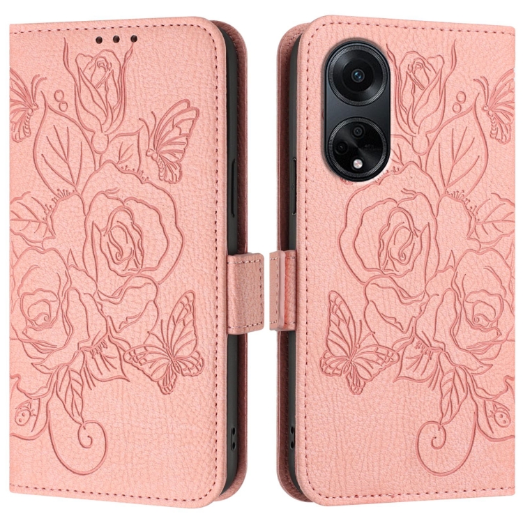 Funda de Cuero Antirrobo Rfid con Relieve En Rosa para Oppo A98 5G/F23 5G (Rosa)