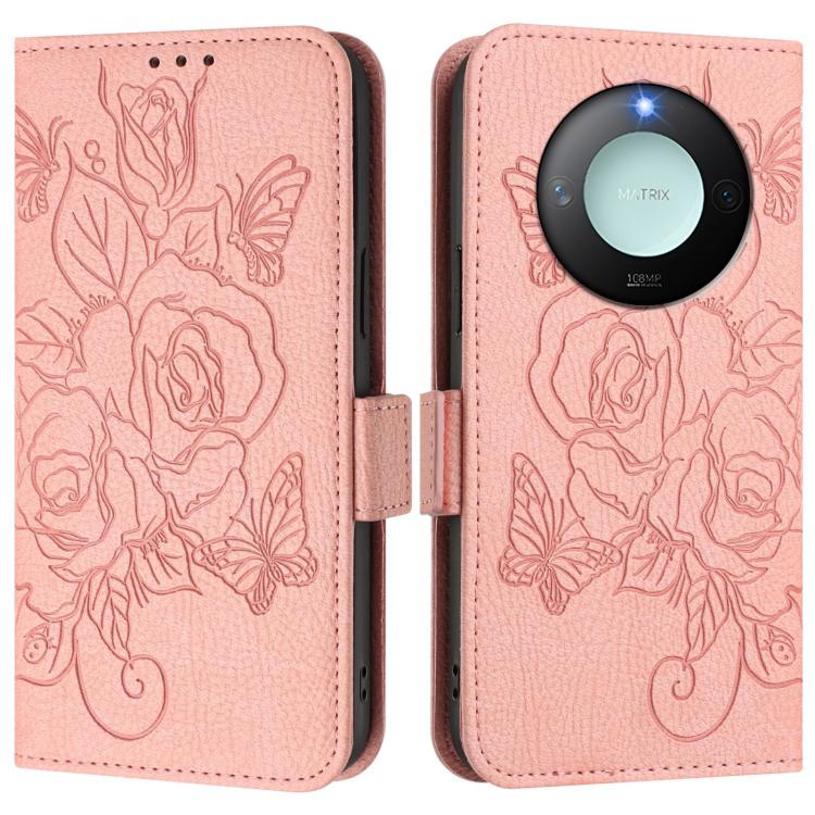 Funda de Cuero Antirrobo RFID con Relieve para Honor X9C 5G (Rosa)