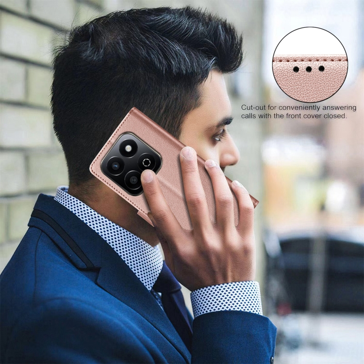 Funda de Cuero Antirrobo RFID para Honor 200 Smart/X7C con Textura de Lichi (Dorada)